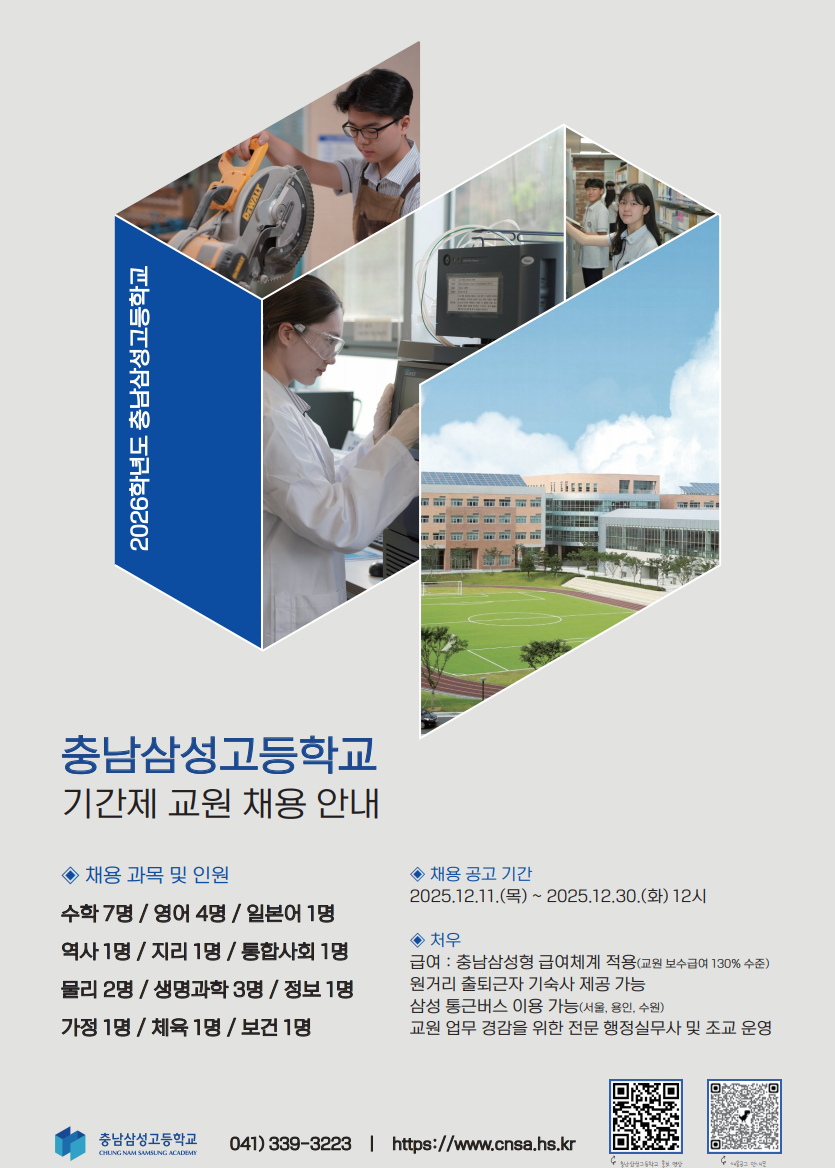 | 제목 | [홍보] 2026학년도 충남삼성고등학교 기간제교원 채용 안내 |