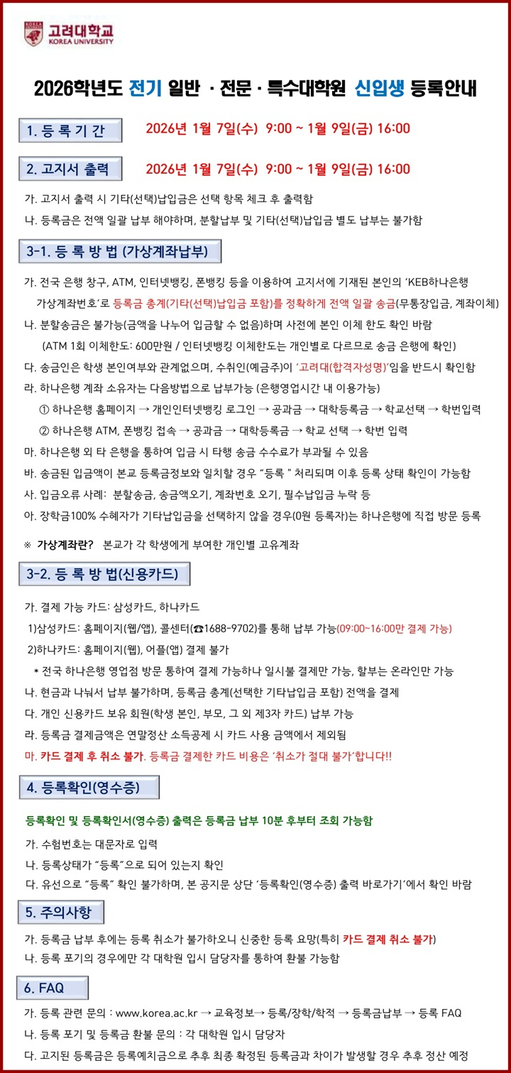 2. 하단 안내문은 본교 홈페이지(www.korea.ac.kr) > 고대소식 > 공지사항 > 일반공지