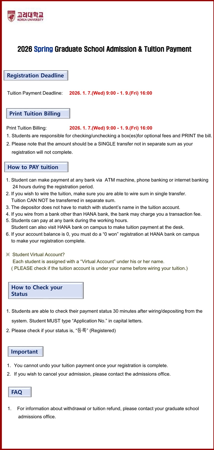 (★법학전문대학원은 1월 5일부터 고지서 조회 가능하며, 등록기간은 1월 5일~1월 6일 16:00입니다.)